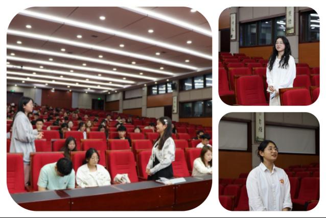 参加此次活动分享的同学为2022级第一团总支谭禄婷、2022级第二团总支康瑞玥和2022级第四团总支徐菁菁。谭禄婷围绕英语学习方法、阅读做题方法和技巧、答题的注意事项三个方面展开,条理清晰、一针见血。康瑞玥重点分享了单词的记忆方法、听力训练及技巧和阅读段落匹配,使英语能力得到有序提升。徐菁菁则侧重讲解了写作和翻译,在题型分布和题型精解方面做出了详细解答,给出了最宝贵的意见。在互动答疑环节中大家积极参与,提出英语学习路上的困惑,有听力方面的难题,有时间管理上的分配不均,也有对学习单词的懈怠性,种种疑惑纷纷得到分享人的解答,使在场各位同学受益匪浅。