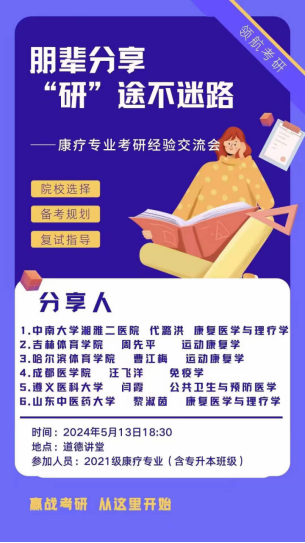 为了更好发挥优秀毕业生的榜样示范作用,帮助即将面临保研和考研的各位同学提前备战、明确目标、科学规划,同时也为贯彻落实党支部“我为师生办实事”实践活动。必赢线路检测3003no1本科生第十一党支部于2024年5月13日18:30在道德讲堂开展康复治疗专业考研经验交流会,本次交流会采取线上线下结合的方式进行,必赢线路检测3003no1就业办主任孙会英、团委副书记田源,以及2021级康复治疗专业、2023级康复治疗专业专升本同学参加。