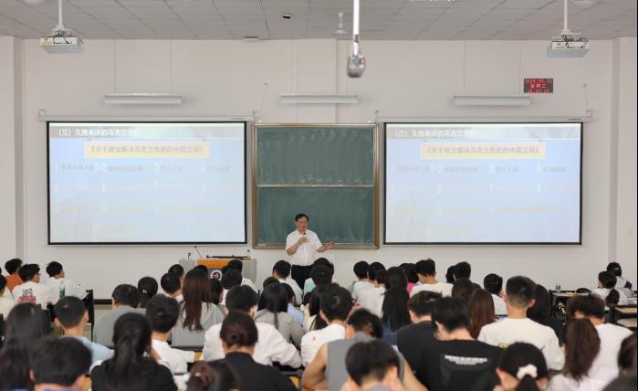 为深入贯彻落实习近平总书记对学校思政课建设作出的重要指示精神,扎实推进习近平新时代中国特色社会主义思想进教材、进课堂、进头脑,进而提升思政课育人实效,5月22日,学校党委副书记、校长刘建国在新蒲校区29阶为2023级临床6-9班同学讲授形势政策课。