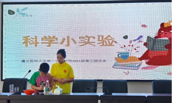 为深入学习宣传贯彻习近平新时代中国特色社会主义思想,贯彻落实习近平总书记关于青年工作的重要思想,动员广大医药类高校学生投身乡村振兴、健康中国战略,以青春建功的实际行动为祖国发展贡献青春力量,以深入基层、深入实际、深入群众的实践行动展现医药学子的青春责任担当,2024年7月18日—7月22日,我院2021级第三团总支围绕安全教育强化行动、铸牢中华民族共同体意识、弘扬中华传统文化、科学启蒙与实验展示、急救技能培训、劳动体验与环保行动、关爱弱势群体以及走访退伍老兵等内容,深入遵义市新蒲新区青城桥社区,开展了为期5天的暑期“三下乡”社会实践活动。