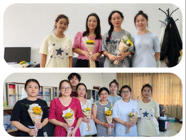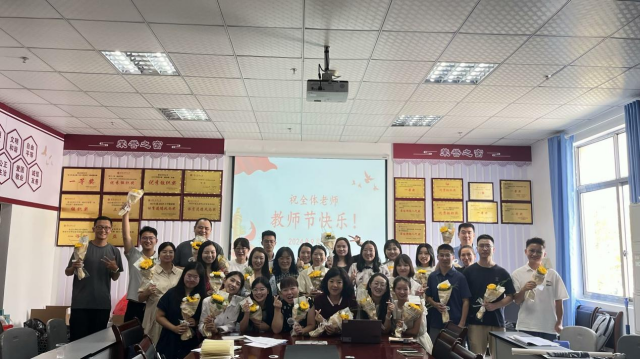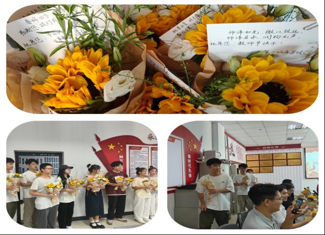 会议室里,学生们手里攥着的花束散发着的淡淡花香犹如老师慈祥的目光,当学生们将代表感恩的贺卡和向日葵花束献给老师们时,当大家齐声的祝福老师教师节快乐时,相机按下了快门,这一刻被定格,将被永远铭记。我们的学习之路还在进行,老师陪着我们走过一程又一程,每一段都是成长留下的深刻印记。