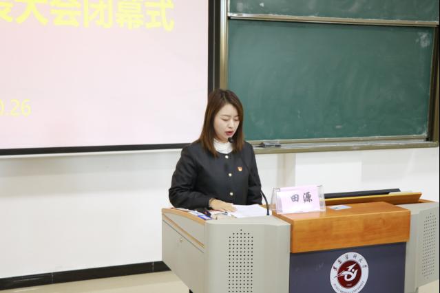 闭幕式上,审议通过了关于学生会工作报告、学生会章程的决议,新一届主席团成员吴冰同学作表态发言。田源致闭幕词,希望新一届学生会持续发挥好学院党政联系广大同学的桥梁和纽带作用,竭心尽力为广大同学解难事、办实事、干好事,团结带领广大同学努力成长为有理想、敢担当、能吃苦、肯奋斗的新时代好青年,在全面建设社会主义现代化国家新征程中贡献青春力量。