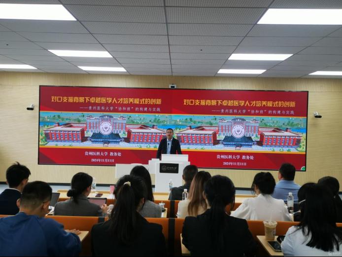 汪志勇向我校“南山班”师生一行表示了热烈欢迎,并介绍了贵州医科大学的历史沿革、“协和班”的创立与发展、“协和班”改革创新工作、“协和班”的工作培养情况以及取得的优异成绩。他希望以“南山班”“协和班”的交流为契机,增进两校在人才培养、教育教学、课程改革、师资建设等方面合作交流。
