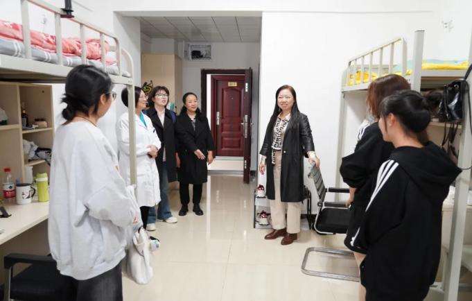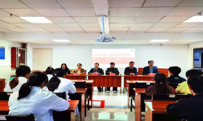 走访小组还深入到食堂、宿舍等地,实地查看了学生的学习、工作、生活情况,并与学生进行了座谈交流。座谈会上,党委副书记杨洪艳对实习生给予了深切关怀和肯定,勉励同学们要把理论知识与实践结合起来,多学、多听、多感悟,牢记“明德笃学 求是致用”的校训,在自己的工作岗位上做出优异的成绩。会上,杨洪艳带领同学们深入学习领会了党的二十届三中全会精神,认真领悟全会就进一步全面深化改革、推进中国式现代化作出的战略部署。就业办主任孙会英进行了就业宣讲,详细介绍了就业形势、就业政策和就业渠道等,极大鼓励了同学们的就业信心,激起了同学们的就业热情。学生科科长姚华敏则围绕就业安全、职业防护、医患沟通、网络安全等方面,开展了安全教育,结合身边具体案例,帮助同学们提高安全意识。各支部辅导员在与同学们沟通交流中,整理收集了大家在实习期间的困难和建议,并通过教务科进行了反馈。