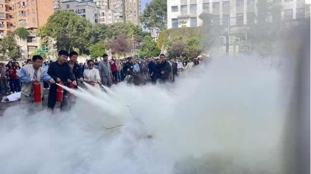 演练过后,活动现场还设置了消防知识趣味问答、发放宣传资料等互动环节,增加活动趣味性,同学们积极参与,在寓教于乐中提高消防知识和应急逃生能力。