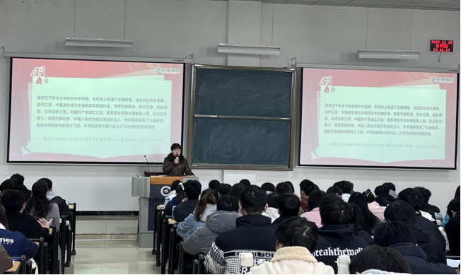 新中国成立七十五年来,一代又一代华夏儿女攻坚克难、接续奋斗,中国的国家面貌和人民生活发生了翻天覆地的变化,充分认识昔日国弱民穷的中国发生的历史巨变,充分认识七十五年来我们取得的一切成就是一代又一代中国人民接续奋斗的结果,对于激励广大青年学生接力谱写为中国式现代化挺膺担当的青春篇章具有重要意义。本次课程杨洪艳从经济、政治、文化、民生、生态五方面为同学们展示了新中国成立七十五年以来,我们党团结带领人民攻克了一个又一个看似不可攻克的难关,夺取了一个又一个看似不可能的伟大胜利。