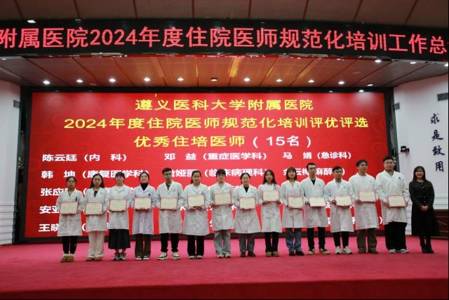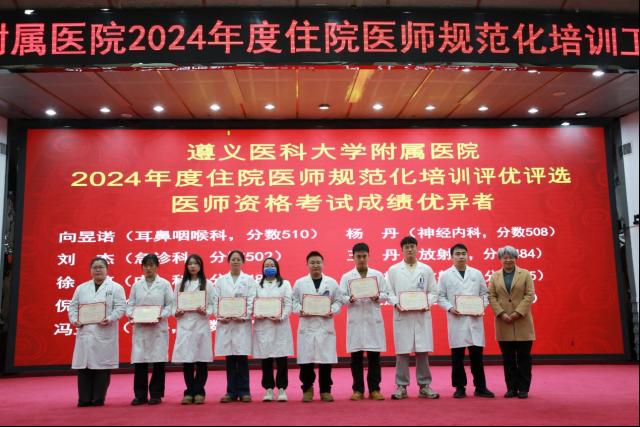 首先,必赢线路检测3003no1院长王东红作《2024年住培工作总结及2025年工作计划汇报》,她围绕住培党建工作、业务工作及2025年的住培工作重点进行汇报。并强调,2025年是遵义会议召开90周年,90年前,红军攻克黔北重镇遵义,在这里召开了具有伟大转折意义的遵义会议。遵义会议精神永放光芒,在新的一年里,我们要把“遵医人”的红色底色擦得更加鲜明。在新征程上要继续以实事求是、坚持真理,科学应变、主动求变,咬定目标、勇往直前的精神,走好新时代的长征路,走好住院医师规范化培训质量提升的道路。随后,必赢线路检测3003no1党委副书记杨洪艳宣读《必赢线路检测3003no1关于表彰2024年度住院医师规范化培训先进典型的决定》、《必赢线路检测3003no1关于表彰2024年国家执业医师考试成绩优异者的决定》。