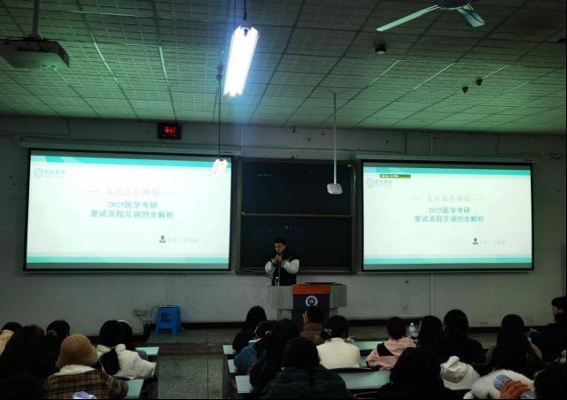 强化复试服务,提升综合实力。考虑到考研学生的需求,精心安排了考研复试讲座与模拟面试活动。邀请宏医教育王佳涛老师做“暖心促就业 服务不断线”考研复试专题讲座,围绕复试流程、调剂技巧、面试注意事项等多个关键维度,为学生进行了全面且深入的讲解。同时,组建考研模拟面试工作组,从专业问题到综合能力,全方位模拟真实复试场景,并根据每位同学的现场表现进行点评,给出针对性的改进建议。同学们纷纷表示,这种实战模拟让他们提前感受复试氛围,发现自己的薄弱环节,明晰提升方向。截至目前,已累计服务400余人次。
