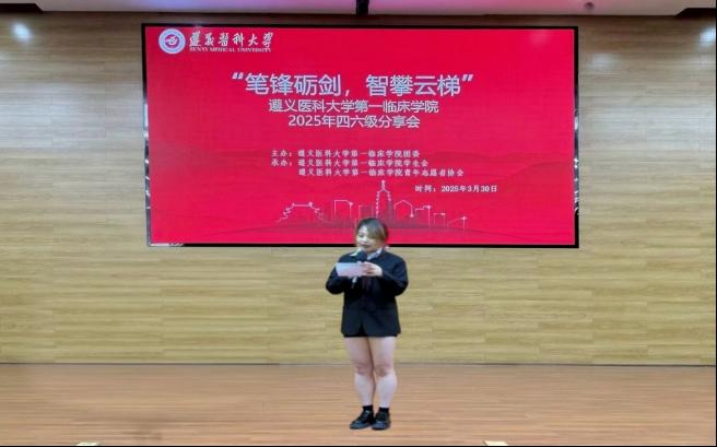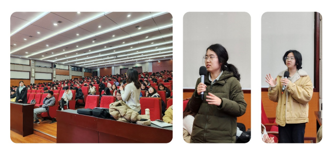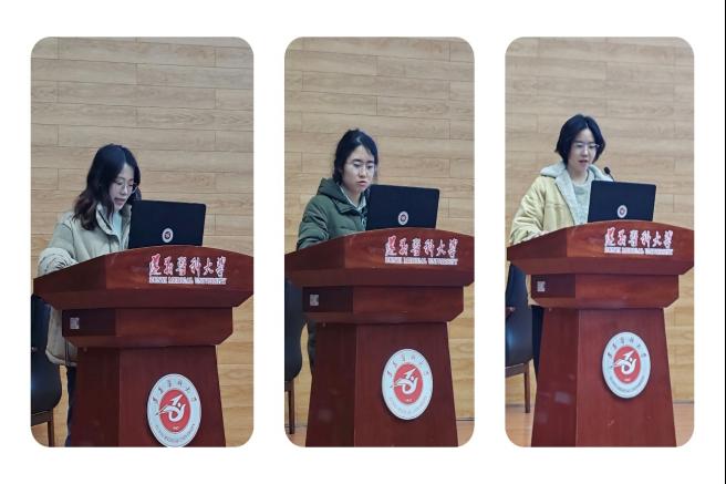 本次活动分享人为我院2022级康瑞玥、2023级张丹凝、口腔医学院2023级吴讯。康瑞玥结合自身经验,强调泛听和精听结合训练的重要性,注意听力中的关键词捕捉与速记技巧。张丹凝重点分享了单词的记忆方法、备考日程安排,使英语能力得到有序提升。吴讯强调阅读做题技巧,采用关键词定位法,同时分享了写作翻译模板活用技巧,在题型分布和题型精解方面做出了详细解答。在互动答疑环节中大家积极参与,有听力方面的难题,有时间管理上的分配不均,也有对学习单词的懈怠性,分享人一一进行解答,使在场同学受益匪浅。