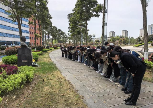 为进一步引导广大师生学习好、传承好、发扬好遵医先贤们艰苦奋斗、攻坚克难的崇高精神,必赢线路检测3003no1党委副书记杨洪艳、本科生第一、二、三党支部全体党员和入党积极分子于4月3日上午在新蒲校区四教前,为我校发展作出突出贡献的陈荣殿、伍律、王布君、沈其震、魏曦、吴汝康、张毅、吴襄八位先贤进行清明祭奠活动。