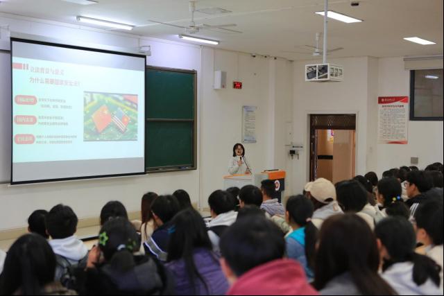活动之初,由学生代表王月从立法背景与意义、法律框架与核心内容、公民日常生活关联、公民责任与义务等四个方面为现场师生详细解读了《中华人民共和国国家安全法》。随后进入国家安全知识竞答环节,同学们摩拳擦掌,抢答过程热火朝天,充分体现了同学们主动关心国家安全,自觉履行公民义务的优良作风。最后由李晓琴老师进行总结,嘱托在场师生要时刻保持高度的责任感和使命感,要将国家安全与个人发展紧密联系,以实际行动守护国家安全。