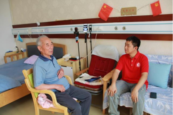 图为队员在敬老院采访退伍老兵王龙智
