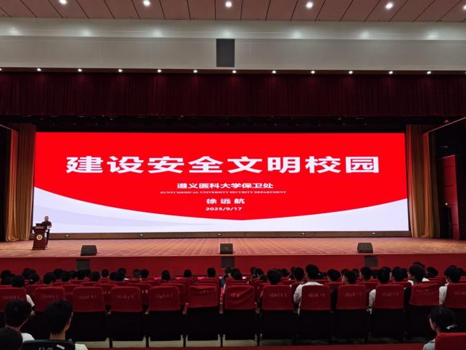为切实增强2025 级新生的安全防范意识与自我保护能力,帮助新生快速适应校园生活、树立安全文明校园建设理念,2025年9月17日下午,我院2025级特邀学校保卫处徐远航科长,为2025级新生开展“建设安全文明校园”专题讲座。2025级辅导员及全体学生参会。