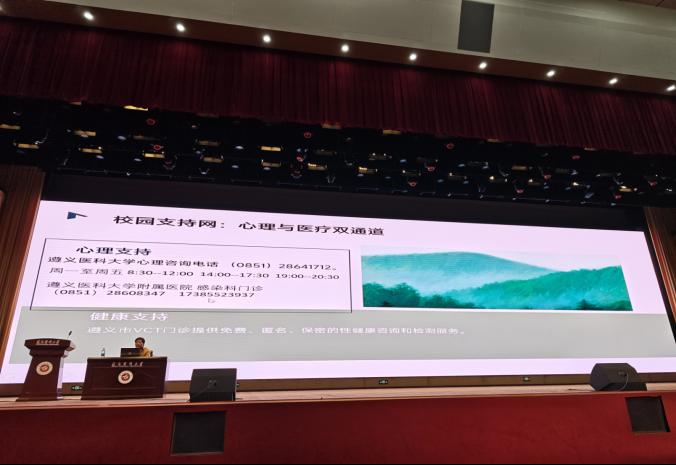 考虑到大学阶段是同学们身心发展的重要时期,环境与生理都将发生一系列变化,杨老师特别关注同学们的身心健康与安全防护问题。她指出,在这一阶段,同学们可能会面临艾滋病传染等诸多风险。因此,她呼吁同学们们要正视自己身体的变化,树立强烈的责任与担当意识,提高自我保护能力。为了给同学们提供更多的帮助,她还主动分享了健康支持咨询电话,让大家在遇到问题时能够及时获得专业的指导与帮助。她还特别提醒大家,作为未来的医学生,不仅要掌握自我求救的技能,更要具备帮助身边朋友的能力,在关键时刻能够为他人伸出援手。