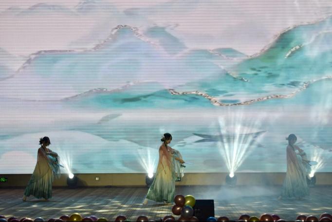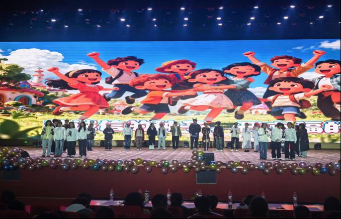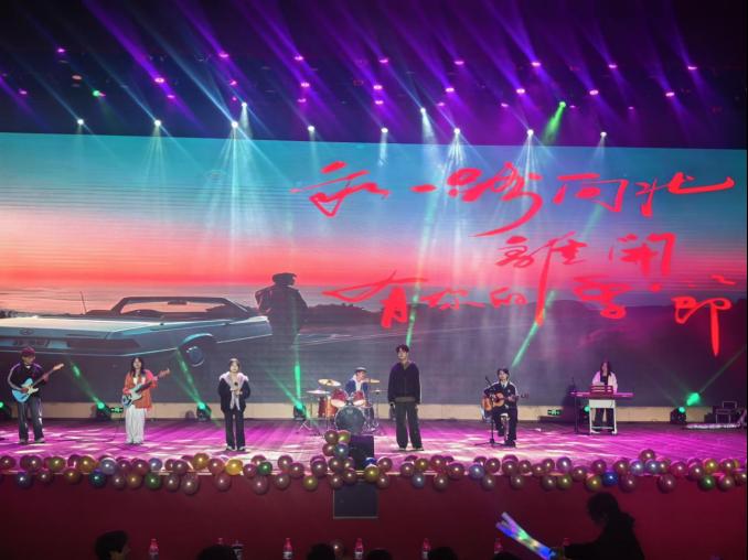 演出环节在校歌《托起生命的航船》中正式拉开帷幕,激昂的旋律凝聚起全场师生的情感共鸣。紧随其后的合唱《明天会更好》,以温暖向上的曲风奠定了整场晚会的基调。晚会节目类型丰富、编排精巧:舞蹈《洛神赋》《龙抬头》《Lucifer》《strategy》《know about me》等以动人的舞姿展现传统文化与现代艺术的交融;歌曲《挪威的森林》《天黑黑》《老男孩》《藏在旋律里的过往与新生》等引发阵阵共鸣;英语脱口秀环节则以轻松幽默的方式展现了学子的国际视野与语言风采。创意T台秀《锦绣中华 潮起新章》融合服饰与表演,彰显青春个性;小品《童话镇》《外卖那些事儿》《治脑病》取材校园生活,笑点与温情并存,深深打动现场观众。无尽夏乐队接连献唱《一路向北》等歌曲,将现场气氛不断推向高潮。