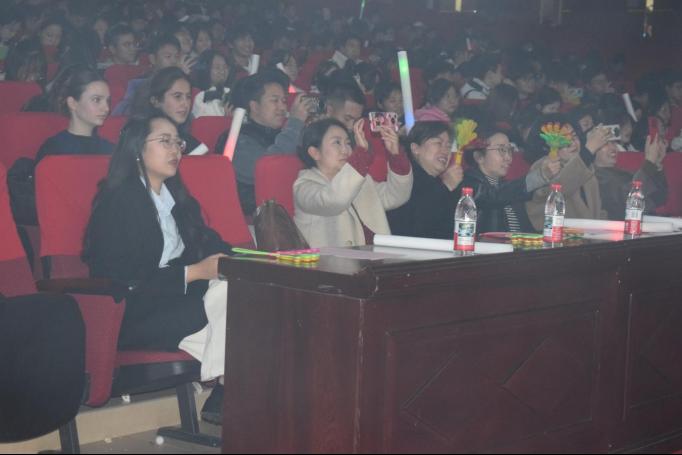 晚会进程中还设置了互动游戏与幸运抽奖环节,师生踊跃参与,现场欢声笑语不断,极大地增强了活动的沉浸感与凝聚力。临近尾声时,2025级六位辅导员共同献上一曲《同桌的你》,熟悉的旋律伴随温情演绎,成为当晚最动人的“彩蛋”,台下同学纷纷挥手应和,掌声与欢呼此起彼伏。