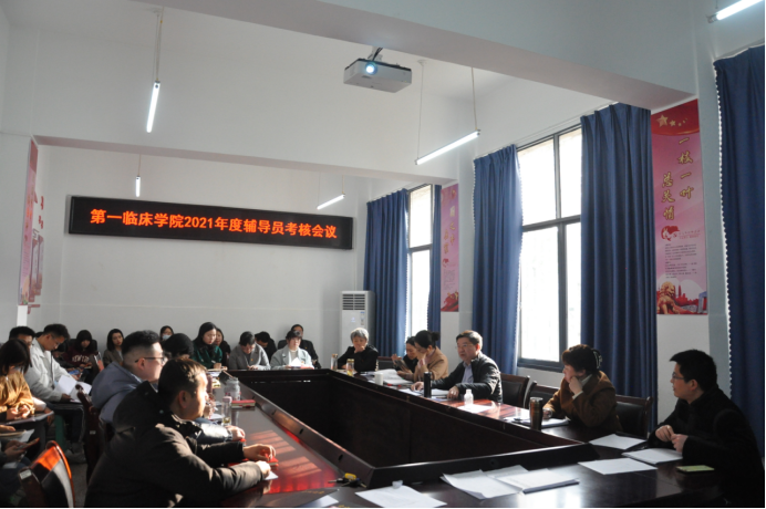 3月3日15:00,必赢线路检测3003no1在大连路校区荣殿楼一楼会议室召开2021年度党支部书记抓基层党建工作述职评议暨辅导员年度考核会议。学院党委书记郑洪同志主持会议,学院领导班子成员和党委委员参加会议并对现场述职进行点评。临床学院副科级以上干部及全体辅导员参加评议。