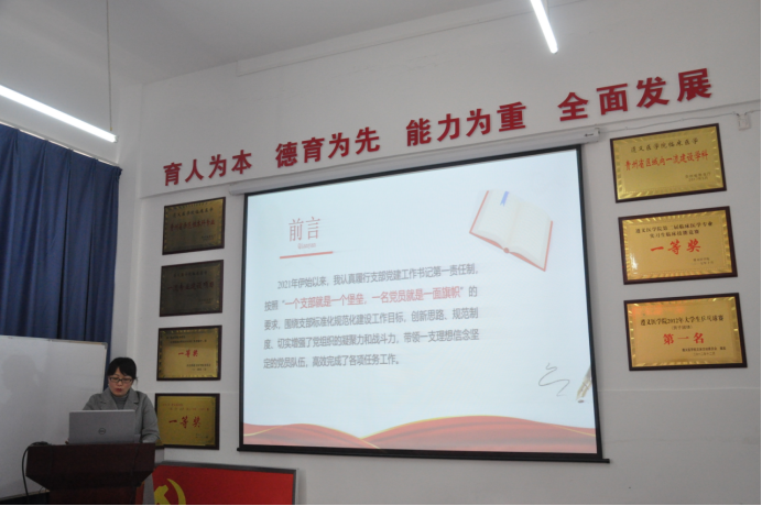 会议听取了教工党支部(1个)、临床医学专业学生党支部(7个)、研究生党支部(3个)、规培学员党支部(3个)等14个基层党支部书记党建工作现场述职。各支部书记详细汇报了全年工作履职情况,总结党支部在政治思想建设,组织作风建设等方面所取得的成绩和不足之处,并对2022年工作列出具体推进措施。