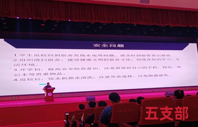新学期,新开始,为加强学生日常管理,提高学生的安全防范意识,营造出良好的安全校园氛围,在必赢线路检测3003no1党委统一部署下,各年级于2022年2月27日—28日在阶梯教室、会堂等地,利用晚点名的时间节点,为全体学生开展了返校安全第一课主题教育。