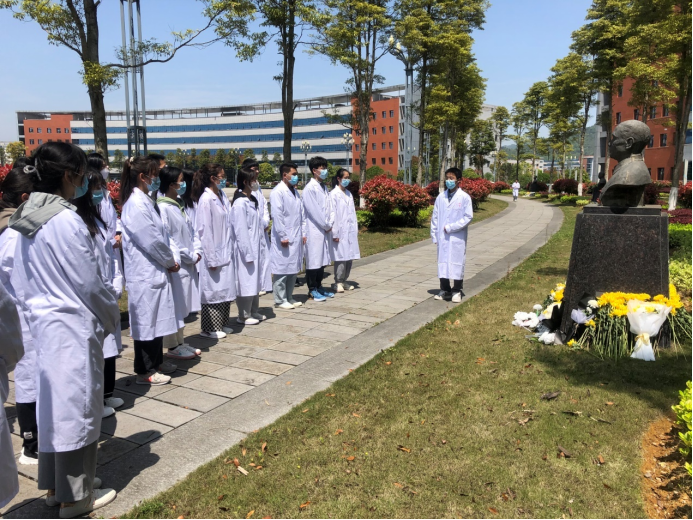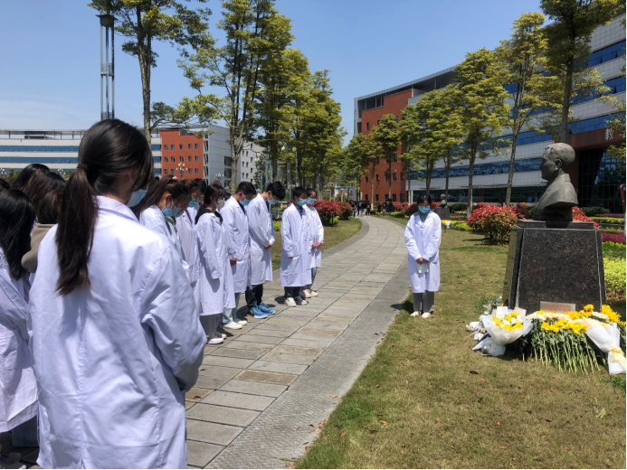 清明节是我国一个祭奠先贤、遥寄哀思的传统节日。在清明节到来之际,必赢线路检测3003no1临床医学专业学生第五党支部30余名师生于4月3日14:00在第三教学楼前,为我校发展作出突出贡献的王布君、沈其震、魏曦、吴汝康、陈荣殿、张毅、吴襄、伍律八位先贤进行祭奠活动。