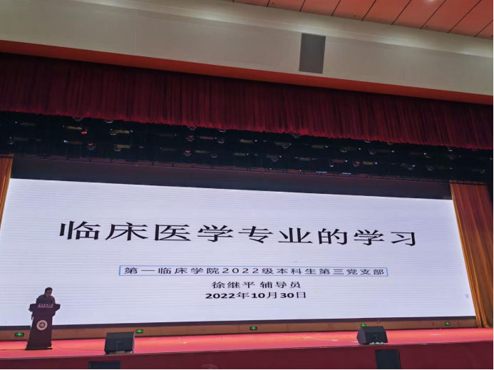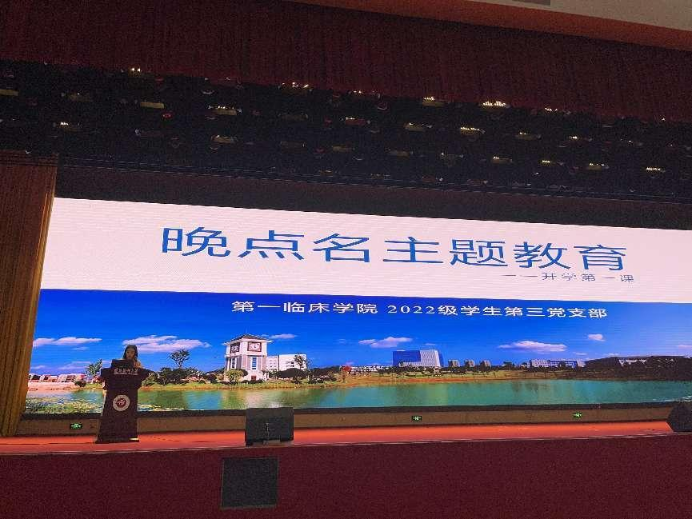 2022年10月30日19:00,我院2022级本科生第三党支部在新蒲校区会堂进行了新生第一次晚点名教育活动暨新生开学第一课。本次会议由辅导员李澜和徐继平主持,支部449名学生参会。
