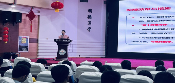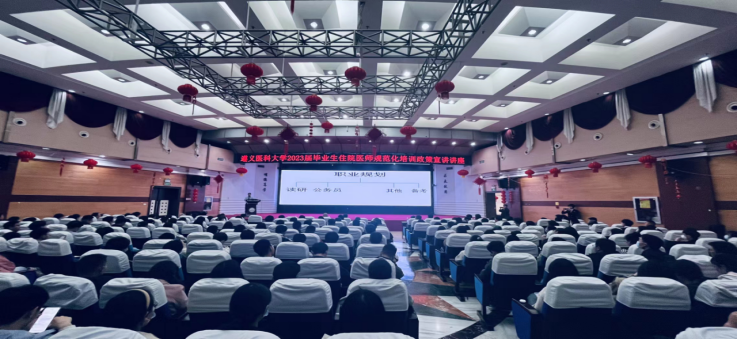 住培宣讲,响应政策。2023年3月16日19:00,我院2023届毕业生春季促就业攻坚行动系列讲座——住院医师规范化培训政策宣讲会在遵医附院第二住院楼四楼多功能厅举行,党委副书记杨洪艳、规培科、就业办、学生科负责人和辅导员尹君参会,并组织毕业年级有规培意愿的学生200余人参加。会上,规培医院相关人员介绍了规培政策、薪资待遇和发展前景等,并现场为同学们答疑解惑。