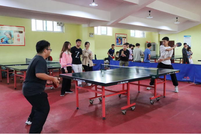 活动现场,体育部高世民首先组织所有裁判员、球员集中强调赛程安排和比赛规则等,现场参赛球员斗志昂扬,胜券在握。随后工作人员宣布活动开始,按照“男单”“女单”“混双”的顺序依次开打。