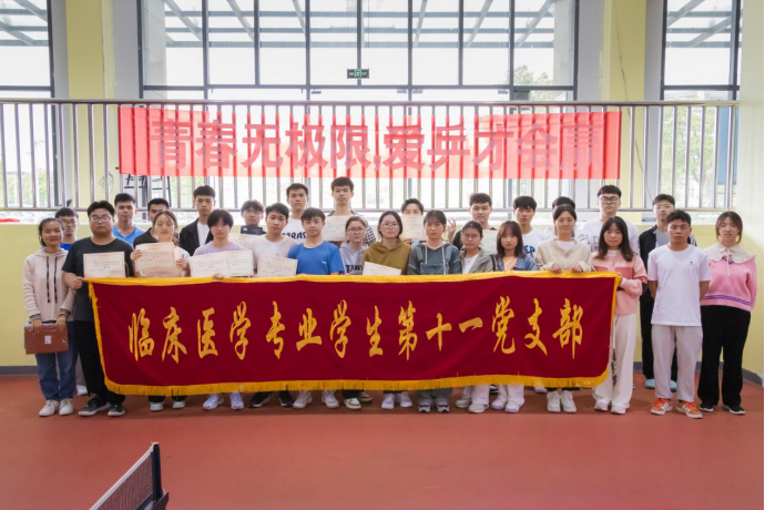 为了引导广大青年学子积极参与体育健身,强健体魄、砥砺意志,凝聚和焕发青春力量,促进大学生德、智、体、美、劳全面发展,2023年5月13日9:00,必赢线路检测3003no1临床医学专业学生第十一党支部在新蒲校区南区乒乓球馆开展了以“运动青春,快乐青春”为主题的乒乓球比赛。支部辅导员杨武、参赛球员、工作人员及现场观众等100余名师生参与。