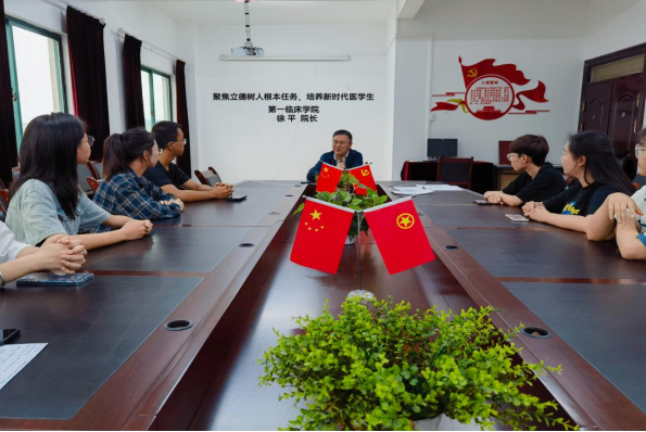 党的二十大报告指出:“坚持为党育人、为国育才,全面提高人才自主培养质量,着力造就拔尖创新人才。”为了深入学习贯彻习近平新时代中国特色社会主义思想,深刻落实习近平总书记重要讲话精神,必赢线路检测3003no1院长徐平于2023年6月24日在新蒲校区临床医学专业学生第十党支部党员活动室为支部党员讲授主题教育专题党课。支部书记孔晓冬主持会议,学生科科长姚华敏、辅导员谢雪艳以及支部全体党员学生参会。