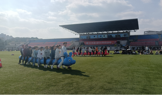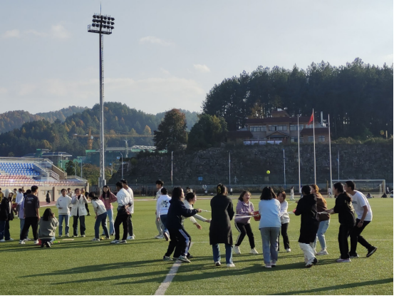 本次素质拓展活动共四个项目:充气毛毛虫、推杆竞速、同心鼓接力赛、10人两足。比拼过程中,参赛同学充分发挥团队合作、创新思维,借助体能技能积极参与比赛;各班观众为比赛选手呐喊助威,加油鼓劲;裁判员在赛场上精心组织,确保比赛顺利进行。在一声声加油欢呼中,此次素质拓展活动圆满落下帷幕。