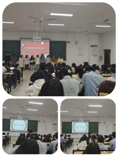 会上,团总支各部门、各班级和团支部依次从其基本情况、学生干部个人述职情况、工作成效与总结、工作展望等方面,对上一年的工作、感悟和收获进行了系统阐述和全面总结。正如团总支副书记王雨涵在述职汇报中提到的“初心不改、奋斗不息”,支部全体学生干部秉承认真履职、积极上进的工作态度,以“团结、务实、奋斗”为工作原则,在服务同学的路上不断探索前进,充分体现了“全心全意为同学服务”的工作宗旨,在各项工作的奉献进取中锤炼自我,挥洒青春。
