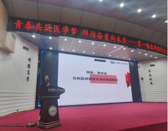 随后,遵义市第一人民医院、南通大学附属医院如皋分院、贵州医科大学第二附属医院的三家单位负责人在现场开展了招生宣讲。在交流环节,同学积极思考,就“住培”报考条件、薪资待遇、工作内容等方面提出问题,相关负责老师对这些问题进行了逐一解答。