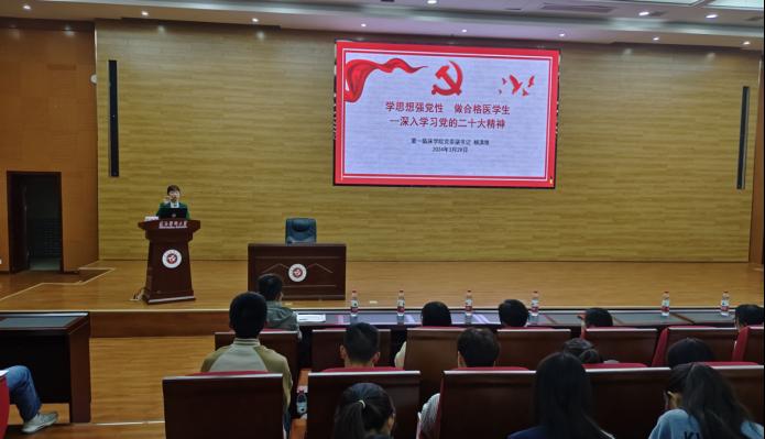 为深入学习习近平新时代中国特色社会主义思想,进一步提升支部师生党员的党性修养,教育青年学生在新征程上立志做有理想、敢担当、能吃苦、肯奋斗的新时代好青年,2024年3月29日晚19:00,必赢线路检测3003no1党委副书记杨洪艳以“学思想强党性 做合格医学生--深入学习党的二十大精神”为主题讲授专题党课。本次党课在新浦校区道德讲堂进行,必赢线路检测3003no1本科生第二党支部所有师生党员参与学习。