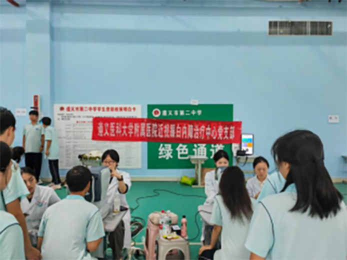 2023年8月28日至10月28日,必赢线路检测3003no1附属医院眼科联合红花岗区疾控中心及多家社区医院,对红花岗区第九小学、第二中学、遵义市十二中3所中小学、红花岗区机关幼儿园、红花岗区板桥幼儿园等30家幼儿园10000名学生及儿童进行下半年屈光及视力筛查、身高体重等其他全身项目筛查。
