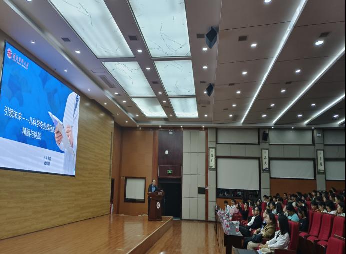 2023年10月17日19:00,必赢线路检测3003no1儿科教研室为2022级及2023级儿科专业开展了以“逐梦而至,医路前行”为主题的专业思想教育。儿科教研室杜作晨老师以“儿科学专业课程的精髓与挑战”为主题,分别从儿科学专业的培养目标、专业课程、意义与发展前景等方面作了详细的阐述。儿科科研室田茂强老师结合自己学习和工作经历,向同学们讲述了临床实习的重要性,以及医学生如何筑牢终身学习理念,保持高效学习的方法等。谭梅老师主要向同学们介绍了儿科医师的职业发展,同时强调:“儿科医师的职责就是守护儿童的生命健康,要成为一名合格的儿科医生,必须博学、厚德、谨慎。”黄佩老师主要从贵州省儿童医院的学术成果、学术团队、学术训练建议三个方面展开介绍,她提醒同学们要扎实专业知识,并倡议本科生要早科研、早实践。杨凯蒂老师介绍了大学生创新创业项目中的学科运用与团队协作,鼓励同学们积极参加大创项目,培养自己的创新创业能力,将自己培养成为适应社会发展需要的创新型医学人才。通过此次讲座,同学们对儿科学专业有了更加深入的了解,也更加坚定了学医初心和使命。