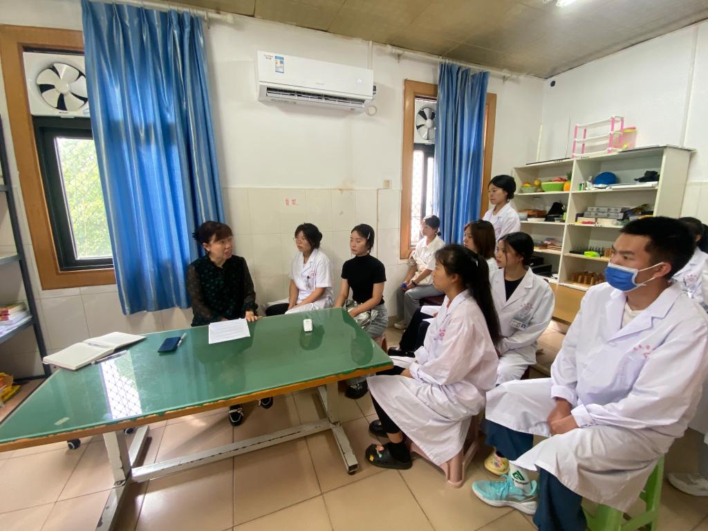 交流会结束后,杨洪艳副书记一行来到康复作业治疗室,与康复治疗学专业的实习同学们进行了互动交流,了解他们在实习期间的住宿、用餐、轮转、带教和岗位适应等情况,并重点强调了学校相关规章制度的重要性。希望同学们能服从学校和医院的统一管理,顺利完成实习任务。