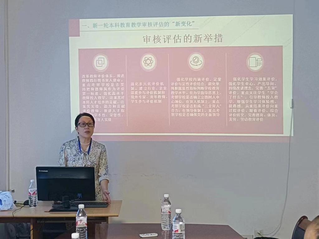 在会上,王东红副院长宣讲了“教学管理下基层”的活动组成,详细解读了本科教学评估工作,并就新一轮本科教学评估指标体系、学科建设和教师发展培训等方面提出了一系列建议,对我教研室的发展起到了积极的推动作用。在座谈会上,王东红副院长与我教研室老师进行深入探讨,使全体教师对即将开展的迎评工作有了统一的认识及如何开展好工作有了更深入的理解。