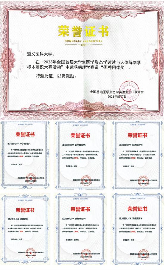 病理科/病理学教研室在“2023年全国首届大学生医学形态学读片与人体解剖学标本辨识大赛活动”中喜获佳绩