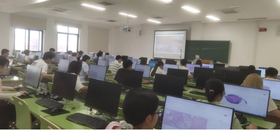 在基础医学院的精心组织、学校团委、实验形态中心等职能部门的大力支持和病理科王进京主任的统筹安排下,由病理科青年教师指导的30名同学参加了全国基础医学形态学实验室主任联席会与山东数字人科技股份有限公司联合举办的“2023 年全国首届大学生医学形态学读片与人体解剖学标本辨识大赛展示活动”。