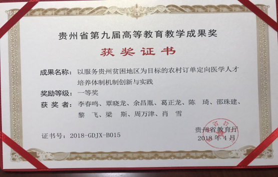于2018年 荣获贵州省第九届高等教育省级教学成果一等奖