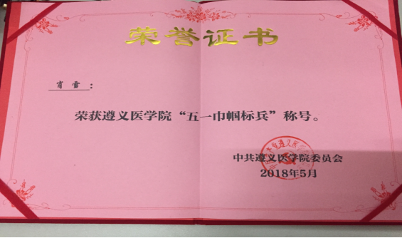 肖雪主任于2018年5月荣获“五一巾帼标兵”