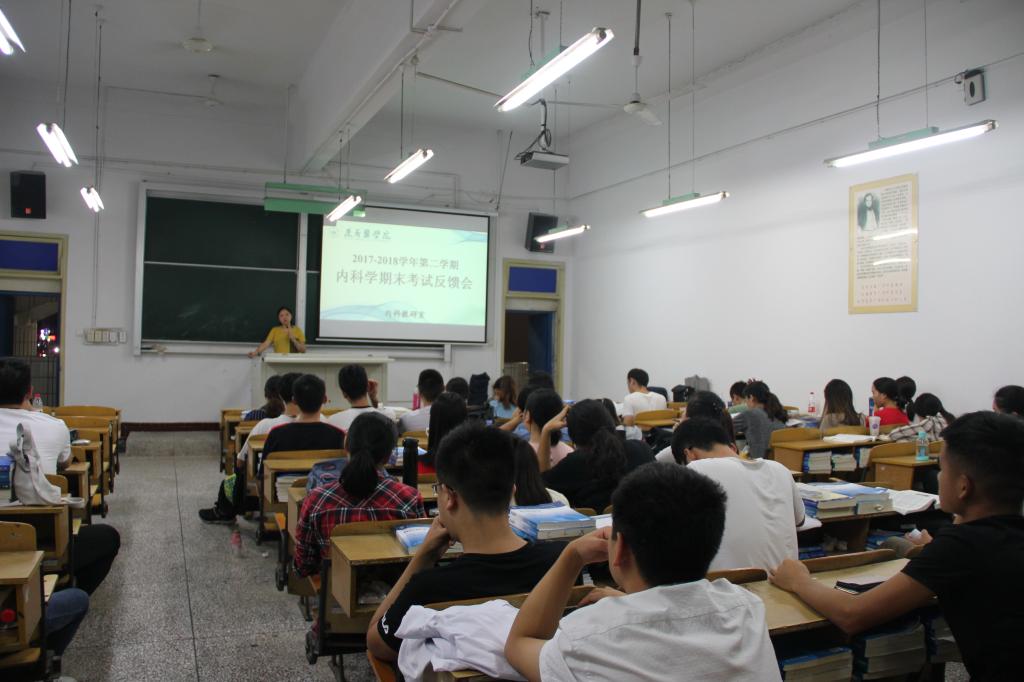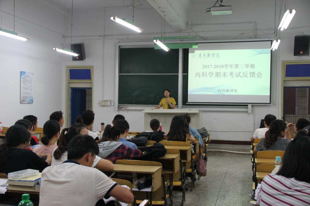 内科教研室于2018年9月20日晚7:00在大连路校区中三教室召开了“2017-2018学年第二学期《内科学-上》期末考试反馈会”。会议由内科教研室副主任王红老师主持,参加会议的有教研室教学管理人员和2015级临床专业学生代表。