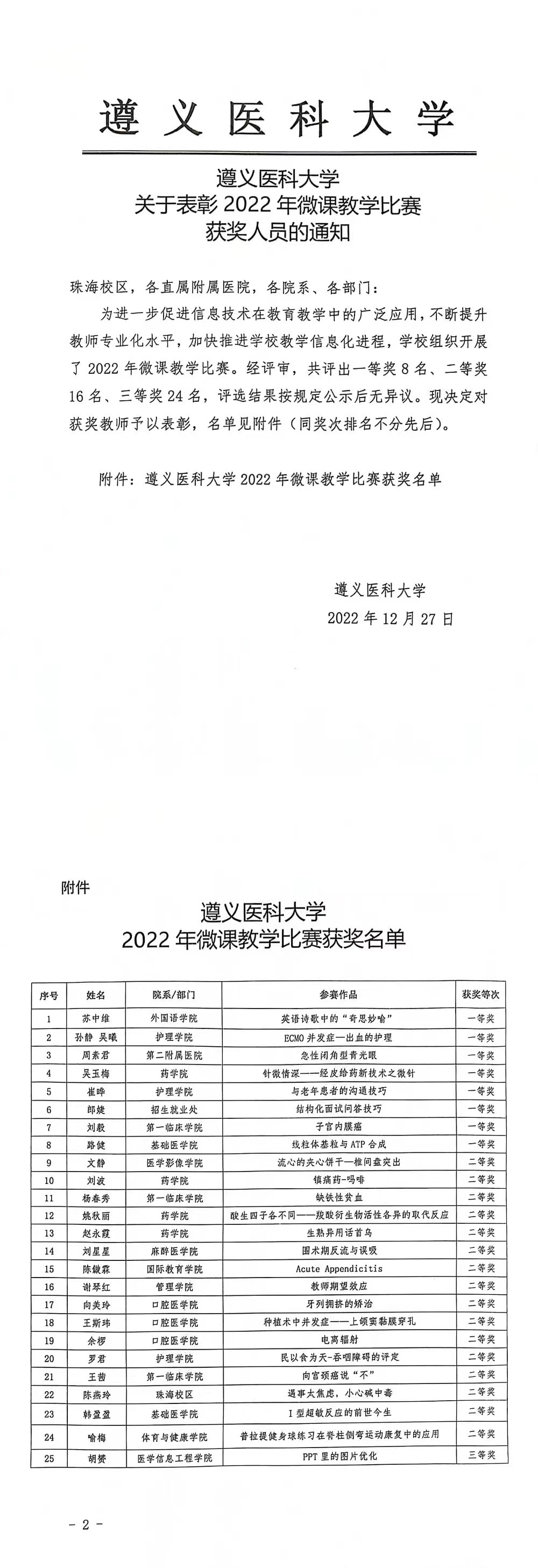 根据《必赢线路检测3003no1关于表彰2022年微课教学比赛获奖人员的通知》,遵医附院神经内科王金老师《人生的三分之一时间-睡眠》微课教学内容于微课教学比赛中荣获三等奖。