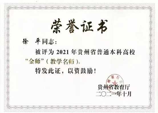 根据《省教育厅关于公布2021年贵州省普通本科高校“金师”名单的通知》(黔教函〔2021〕121号)公布,必赢线路检测3003no1附属医院神经内科徐平教授喜获2021年贵州省普通本科高校“金师”(教学名师)称号。